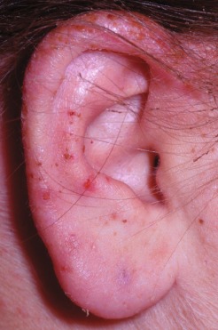The common diseases discussed in this chapter are characterized by discrete, small, erythematous papules that do not become confluent. Most of these disorders are pruritic, some markedly so. As a result, the papules are often crusted secondary to excoriation. Papules are common primary lesions found in numerous skin diseases, including acne, eczematous diseases (e.g., atopic dermatitis), and the scaling disorders (e.g., psoriasis). However, in these diseases, other features are present that allow for their characterization. For example, comedones and pustules accompany papules in acne, eczematous papules coalesce into plaques in atopic dermatitis, and plaques as well as papules located on extensor surfaces are present in psoriasis. The diseases in this chapter feature individual papules as the predominant finding or primary lesion ( Table 11.1 ). History and physical examination often establish the diagnosis but a biopsy, when needed, confirms the clinical suspicion.