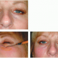 The skin of the eyelids and periorbital area is markedly thin compared to skin elsewhere on the face. With aging, this skin becomes even thinner, causing it to become more translucent. The vascular network underlying the surface becomes visible and lends a reddish-blue hue to the periorbital area (Fig. 5.2C.2). This is especially true in the area of the infraorbital rim, where the lack of structural fat and muscle found elsewhere on the face places the coloration in relief against the underlying bone (1,10).