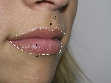 A successful injector is a student of lip form and function and needs to be cognizant of the differences between youthful and senescent lips. In youth, the upper lip constitutes about one-third of the total lip volume, and the lower lip constitutes about two-thirds of the mass. This applies to the “golden ratio” of 1 : 1.61 for the upper and lower lip, respectively. This varies among patients and ethnicity ( Fig. 10.8 ). The youthful perioral region is defined by numerous anatomic components that undergo changes with aging. The astute injector is aware of normal lip volume, outline, philtrum, and philtral columns ( Fig. 10.9 ).