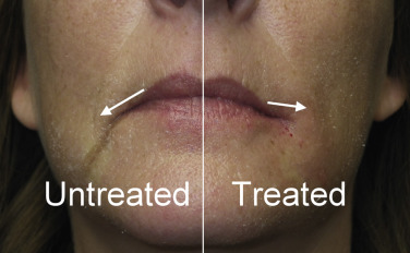 Patients with severe lines are best treated with combination therapy, with Botox, filler, and laser resurfacing. Patients must understand that these lines will not be eradicated, but rather mitigated. Although lines can be individually injected, this procedure has the liability of creating a series of “speed bumps” or ridges across the lip.