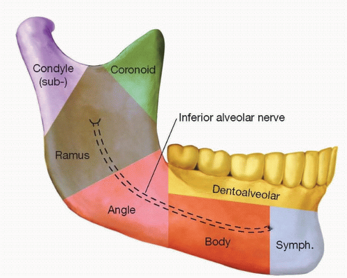 FIG 1 • Schematic demonstrating the anatomic subdivisions of the hemimandible.