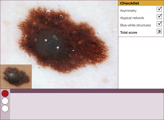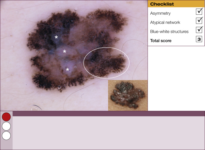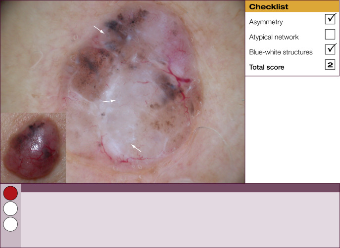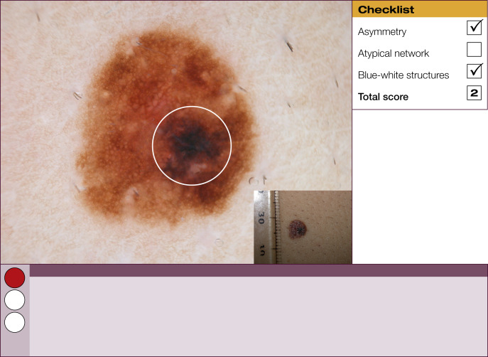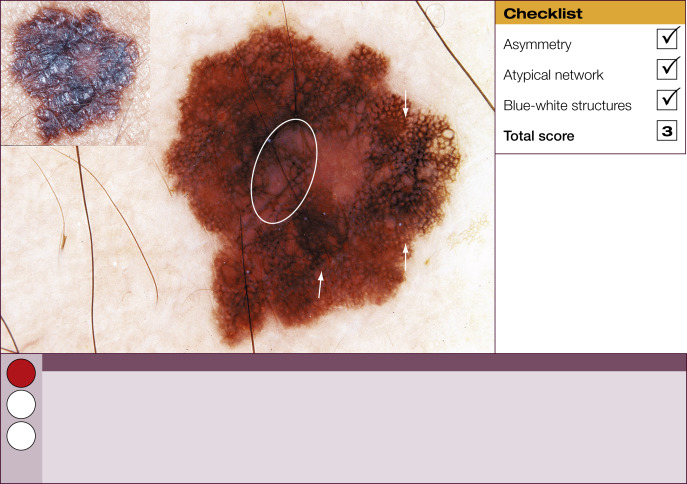 The 3-point checklist was designed to be used as a screening method. The sensitivity is much higher than the specificity to ensure that melanomas are not misdiagnosed. We recommend that all lesions with a positive test (3-point checklist score of 2 or 3) are excised ( Table 1 ).