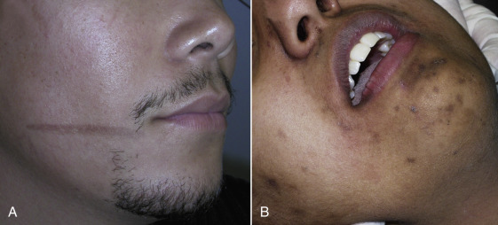Numerous contraindications exist for both peel and laser resurfacing. History of hypertrophic or keloid scar, poor healing, and active conditions such as severe rosacea or acne may complicate skin resurfacing. Some skin diseases such vitiligo, lichen planus, psoriasis, and verrucae can spread to traumatized skin, which is known as Koebner’s phenomenon. Peel or laser resurfacing can induce this problem on the treated face and neck areas. A patient with somatic vitiligo who underwent facial resurfacing could possibly have vitiligo pigmentation changes on the lasered facial skin.