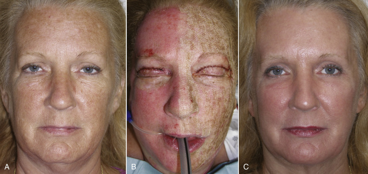 Suitability of patients for traditional resurfacing runs the gamut of skin damage and age groups. There is no one single treatment with this technology, as the treatment is tailored by manipulating the energy and density of overlap. Some patients are treated with a single pass at a lower energy (3.0 J/cm 2 ), while others are treated with three or more passes with a fluence 7.5 J/cm 2 depending upon the degree of damage and skin type. I only perform aggressive LSR on Fitzpatrick I–III skin types and never use it on darker skin types (where I may use fractional laser). I have performed numerous full face laser cases and feel that it is a predictable treatment and I have taken numerous steps to mitigate the infamous CO 2 laser recovery, discussed later.