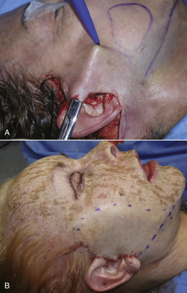 Out of the total group of over 1000 facelift patients, nine of patients experienced preauricular flap breakdown (1%), defined as a preauricular necrosis >1 cm 2 . Six of the patients with flap breakdown did not undergo simultaneous laser resurfacing (0.7%), while three patients did (0.35%). This is not statistically significant and the preliminary results show the combination of laser and facelift to be safe in experienced hands.