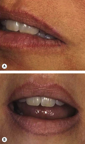 Paradoxical darkening of skin-colored tattoo ink is a common phenomenon following treatment with any of the Q-switched lasers. This unfortunate event happens immediately after a single laser pulse and is caused by a shift from an oxidized state to a reduced state in the tattoo pigment. This was classically reported as darkening of red “lip liner” to dark brown or black pigment as the ferric oxide tattoo was reduced to ferrous oxide ( Fig. 137.10 ). Similar color changes can be seen in tattoos with titanium dioxide, a common agent used to lighten tattoo pigments; when a Q-switched laser is applied to titanium, it can change from white to blue–black. Although this problematic side effect can be improved via continued treatment with any of the Q-switched lasers, a test spot is wise with such tattoos, particularly on the face.