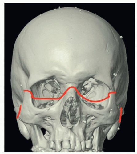 Le Fort III, first described by Rene Le Fort in 1901, is a pattern of craniofacial fractures that involves the nasofrontal suture, traverses the orbital floor, and crosses the zygomaticofrontal suture and zygomatic arch (FIG 1).1