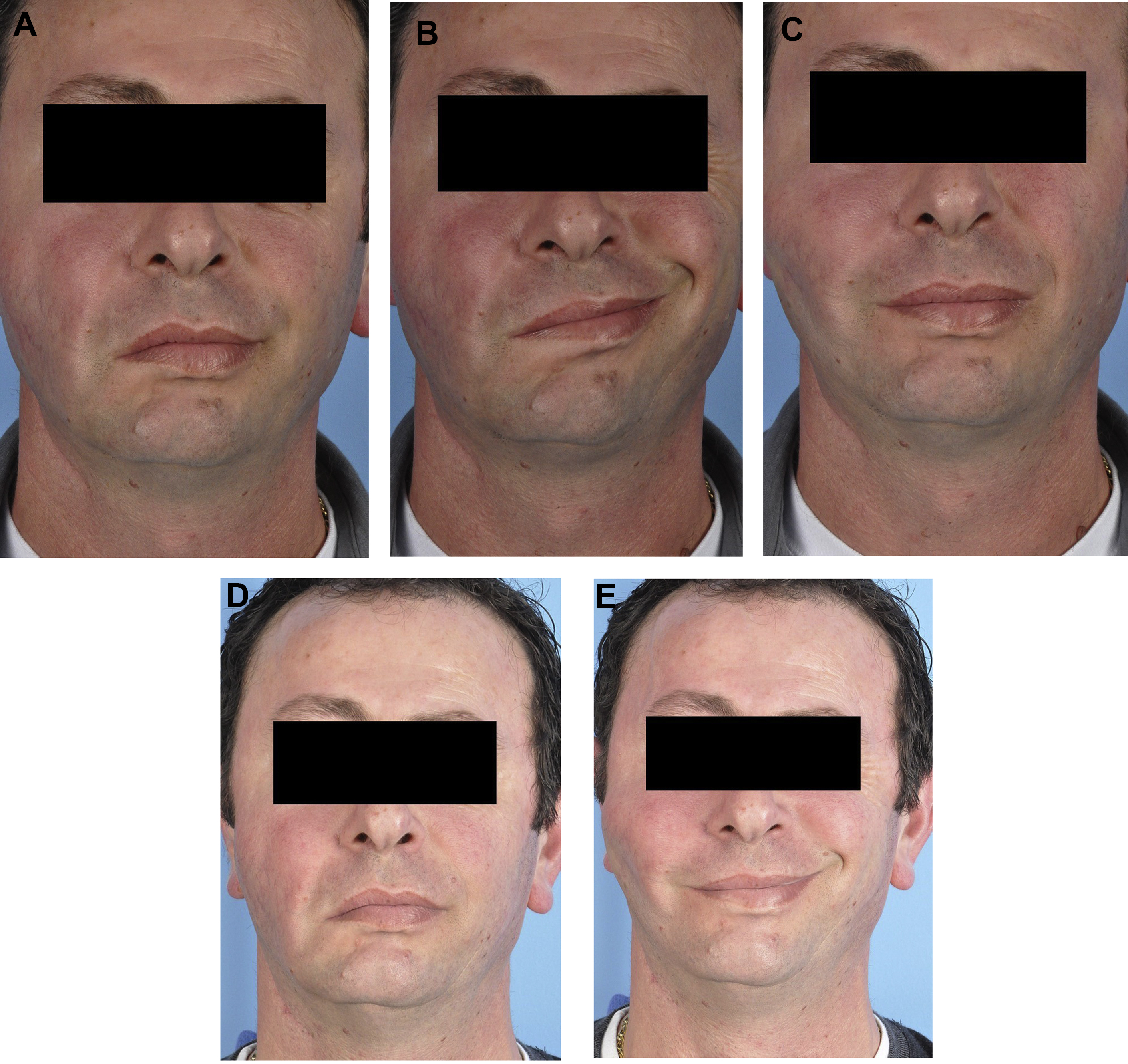 Suboptimal FGMT outcomes can also result from midfacial asymmetry. Midfacial bulk after FGMT can be disfiguring, and patients may avoid smiling to prevent dynamic asymmetry ( Fig. 3 ). In 1984, Manktelow and Zuker described transferring a “fascicular territory” of gracilis muscle to decrease bulk. Six years later, in situ muscle thinning was described as another strategy to decrease bulk while minimizing risk for facial hematoma. Despite these techniques, Terzis and Noah reported a 26% revision rate to debulk gracilis muscle in their 1997 case series.
