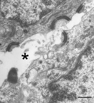 Light microscopy of skin revealed extensive suprabasal clefting with some spongiosis and acantholysis ( Fig. 1 C). These changes extended into hair follicles and eccrine ducts. Ultrastructurally, there was evidence for detachment of keratin intermediate filaments from the inner plaques of desmosomes in all layers of the epidermis ( Fig. 2 ). The number and size of the desmosomes appeared normal and both inner and outer plaques were clearly discernible. In contrast to many other autosomal-recessive blistering genodermatoses, however, immunolabeling of skin with antibodies to a panel of desmosomal and hemidesmosomal proteins was not helpful in establishing a candidate gene for mutations. Notably, all antibodies showed normal intensity staining although the pattern of staining for several desmosomal proteins was more punctate: This was the case for desmoplakin (DSP), plakoglobin, plakophilins, desmogleins, and desmocollins. In addition, labeling with keratin antibodies showed a condensed perinuclear staining, rather than a diffuse cytoplasmic pattern. The skin biopsy clue that led to the DSP gene ( DSP ) as the candidate gene was the ultrastructural observation that keratin filaments failed to connect properly to the inner dense plaques of desmosomes, a finding that had been observed previously in DSP knockout mice and in patients with nonsense/missense combinations of mutations in DSP , resulting in skin fragility–woolly hair syndrome (MIM607655).