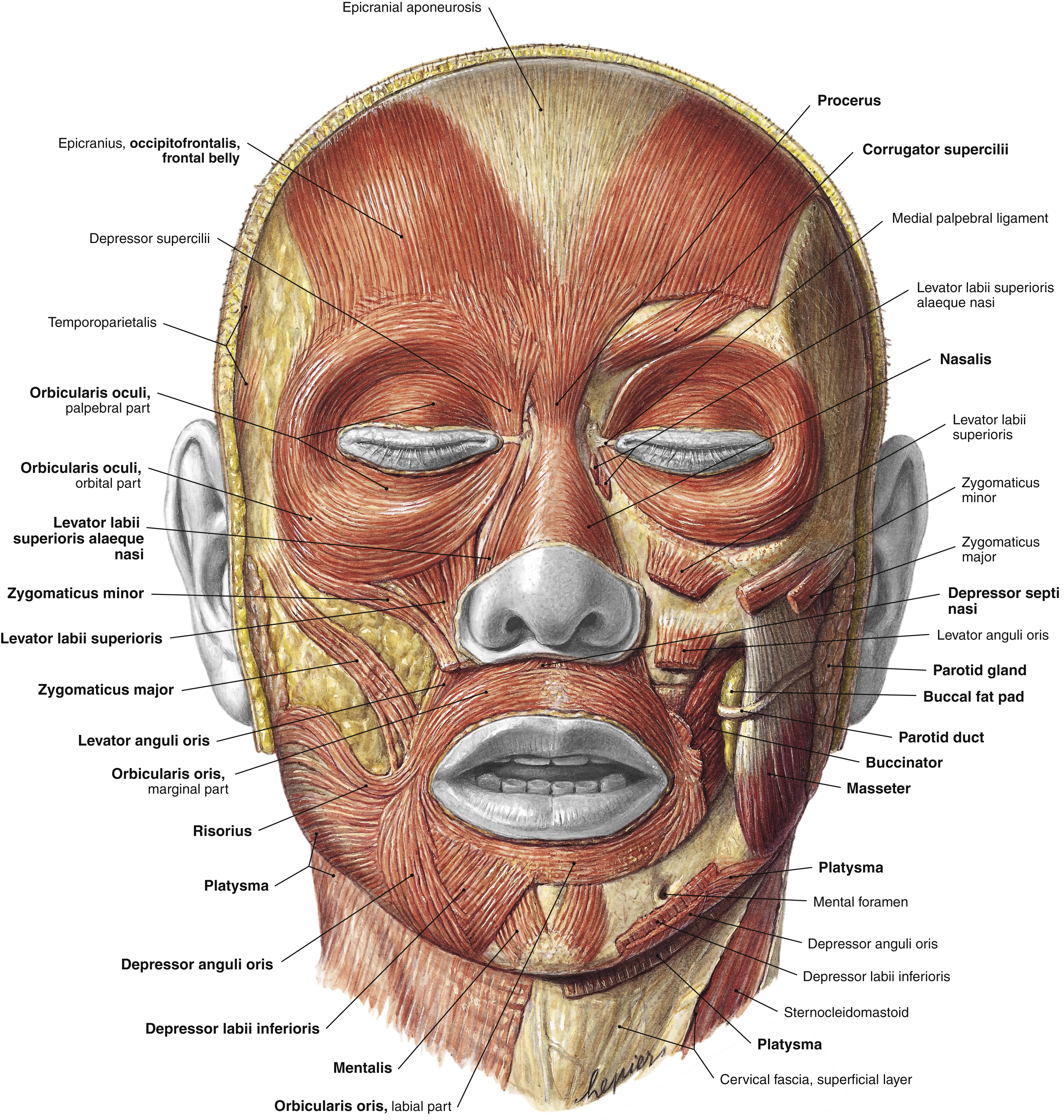 The facial nerve (VIIth cranial nerve) provides the motor innervation to the perioral musculature via its buccal and marginal mandibular branches. There are interconnections between both branches of the facial nerve distal to the parotid gland. The motor nerves are located on the undersurface of all the perioral musculature except for buccinator, levator anguli oris, and mentalis, where the nerve lies on the superficial surface of these muscles.