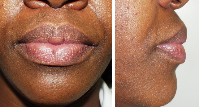 Macrocheilia defines a larger than normal lip. Various ethnic groups share the characteristic of larger lips including African American, Asian, and other groups ( Figs. 2 and 3 ). For the remainder of this article racial lip differences with larger lip anatomy are referred to as “ethnic” lips. This term would apply to racial groups that commonly have lips that are larger than the Caucasoid lip and more frequently seek cosmetic lip reduction.