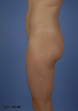 Type I: localized lipodystrophy. Often younger patients with good skin tone and minimal skin irregularities.