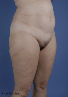 Type III: skin redundancy and lipodystrophy. Patients with significant skin redundancy that would be more amenable to excisional surgical techniques. However, liposuction may be a useful adjunct in order to achieve an optimal result.