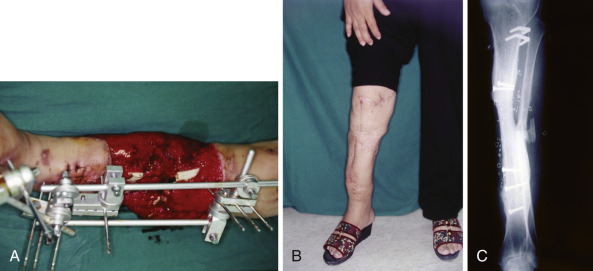 The context of reconstruction of the traumatized lower limb should be understood by considering the approach to the most severely injured patient. In this scenario, the decision for limb salvage versus amputation proceeds by first classifying the patient according to the following three categories. One group of patients presents with severe limb injury and concomitant life-threatening conditions, and limb salvage is incompatible or significantly risky for life preservation. These patients should undergo amputation. A second group of patients presents with severe limb injury and no imminent life-threatening injuries. In these patients, sensation and distal mobility is preserved, and limb salvage is attempted. However, the most challenging treatment category of patients is the third group, who present with severely damaged and de-functionalized limbs whose functional prognosis is uncertain. For these patients falling into the “gray zone,” a wealth of outcomes-oriented investigation over the last two decades has sought to provide reliable guidance on the decision for amputation versus limb salvage. Multiple scoring systems have been devised, including the Predictive Salvage Index (PSI); Mangled Extremity Severity Score (MESS); Limb Salvage Index (LSI); Hannover Fracture Scale; and the Nerve Injury/Ischemia/Soft Tissue/Skeletal Injury/Shock/Age (NISSSA) score. Subsequent studies including the Lower Extremity Assessment Project (LEAP) series assessed these scoring systems and tried to define the characteristics of the individuals who sustained these injuries, the characteristics of their environment, the variables of the physical aspects of their injury, the secondary medical and mental conditions that arose from their injury and treatment, their ultimate functional status, and their general health. Furthermore, these investigations analyzed complications and instances of secondary amputation, and none of the lower extremity injury severity scoring systems could be consistently validated for deciding on amputation versus salvage. The source of the disagreement may be due to the highly variable patient population of different regions, and the different personal factors that substantially affect life outcome after such catastrophic injury. Our group has generally been able to achieve worthwhile functional reconstructions and patient satisfaction for MESS <10. If MESS is ≥10, we generally recommend amputation but ultimately allow the patient and family to decide. Our reconstructive goals are to provide functional restoration by combining a competent weightbearing bony support with a functional motor unit, to yield a stable, durable, and pain-free limb. There is some evidence that limb salvage is psychologically beneficial even when functional outcome may not be better than prosthetic replacement. Since very few limbs in the clinically stable patient are not primarily salvageable with the current arsenal of reconstructive modalities, our goal is to have the patient arrive at an informed treatment decision after a reasonable consideration of the relevant factors of overall patient health, expected functional recovery of the salvaged limb versus expected prosthetic functional level, and socioeconomic circumstances (ability to take time away from work and available support network at home); it should be noted that there is an association between favorable functional outcome and adequate family help, as shown in the LEAP study. Surgery should be pursued only after careful consideration of these factors in the context of each individual patient.