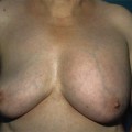 Examination of the breasts, with attention to volume, area, tissue consistency, surrounding skin redundancy, and areolar size.