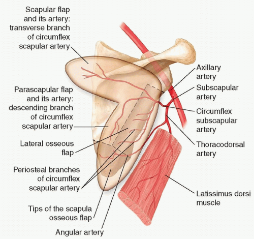 • Although all these can serve as the source for axial flaps overlying the specific branch, the two most commonly used are the scapular and parascapular flaps based on the main transverse and descending branches, respectively (FIG 1).
