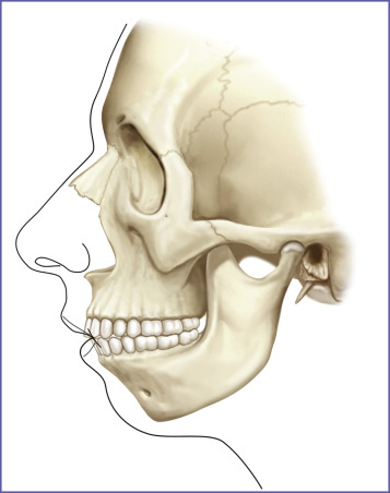 Another group of patients who benefit from mandible augmentation are those with skeletal mandibular deficiency ( Fig. 12.3 ). It has been estimated that approximately 5% of the total US population has skeletal mandibular deficiency resulting in a class II occlusal problem. The majority of these patients (approximately 80%) can have their dental relationships normalized through orthodontic tooth movement. The remaining 20%, or 1% of the total population, have mandibular deficiency that is so severe that surgical mandibular advancement would be needed to correct it.