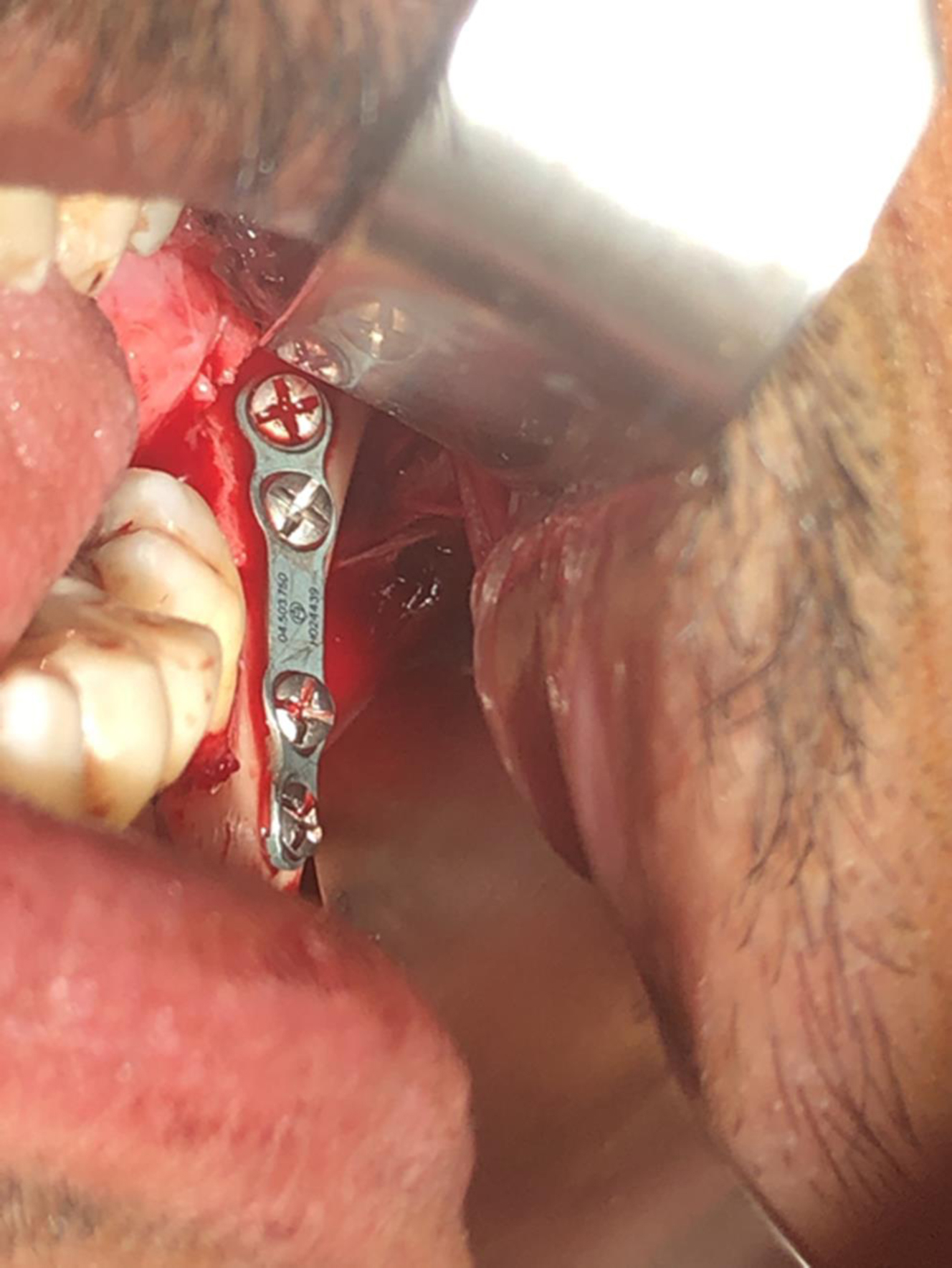 Malleable fixation plates are a bendable and less rigid version of the classic Champy plate, have a thin profile, and similarly use monocortical screws. The plate must be bent to the contour of the mandibular arch on which it is being placed but is malleable enough to allow final contouring to be formed by the screws as they are tightened and driven home. These plates were initially intended for non-load-bearing areas, such as the mid-face, however; they were adapted for MAFs after studies found one point of fixation to be superior to two for reduction of these fractures. Potter and Ellis were among the first to report on the use of these thin malleable plates with 1.3-mm screws, and while they were found to provide sufficient reduction, there was a high rate of intraoperative failure due to plate fracture upon fixation. In 2011, Esen and colleagues performed a cadaver study on sheep mandibles showing the use of a single thin malleable plate was not sufficient alone to withstand the forces generated by biting. Thus, a single thin malleable plate is not considered the gold standard of treatment for fracture osteosynthesis.