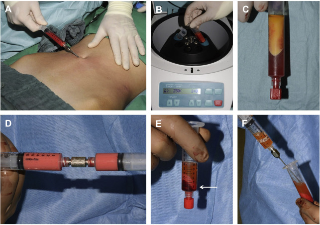 The procedure starts with the harvest of adipose tissue. The authors prefer the abdomen ( Fig. 1 A) as the primary donor site, but other areas, such as flanks or thighs, may be selected, depending on the preference of the performing plastic surgeon and patient. The authors investigated the content of soluble factors, stromal vascular fraction (SVF) cells, and ASCs in lipoaspirates from the abdomen, knee, and thighs earlier. Although the content of matrix metalloproteinase (MMP)-9 was significantly higher in lipoaspirates from the abdomen compared with the knee, the concentration of other growth factors, SVF cells, and ASC count showed no statistical difference between the 3 donor sites. Therefore, the authors conclude that the donor site for fat harvest can be well discussed with patients before surgery.