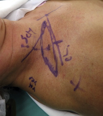 The flap is designed with or without a skin flap in a horizontal orientation above the clavicle.