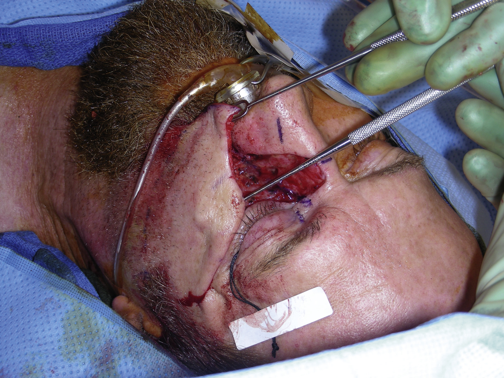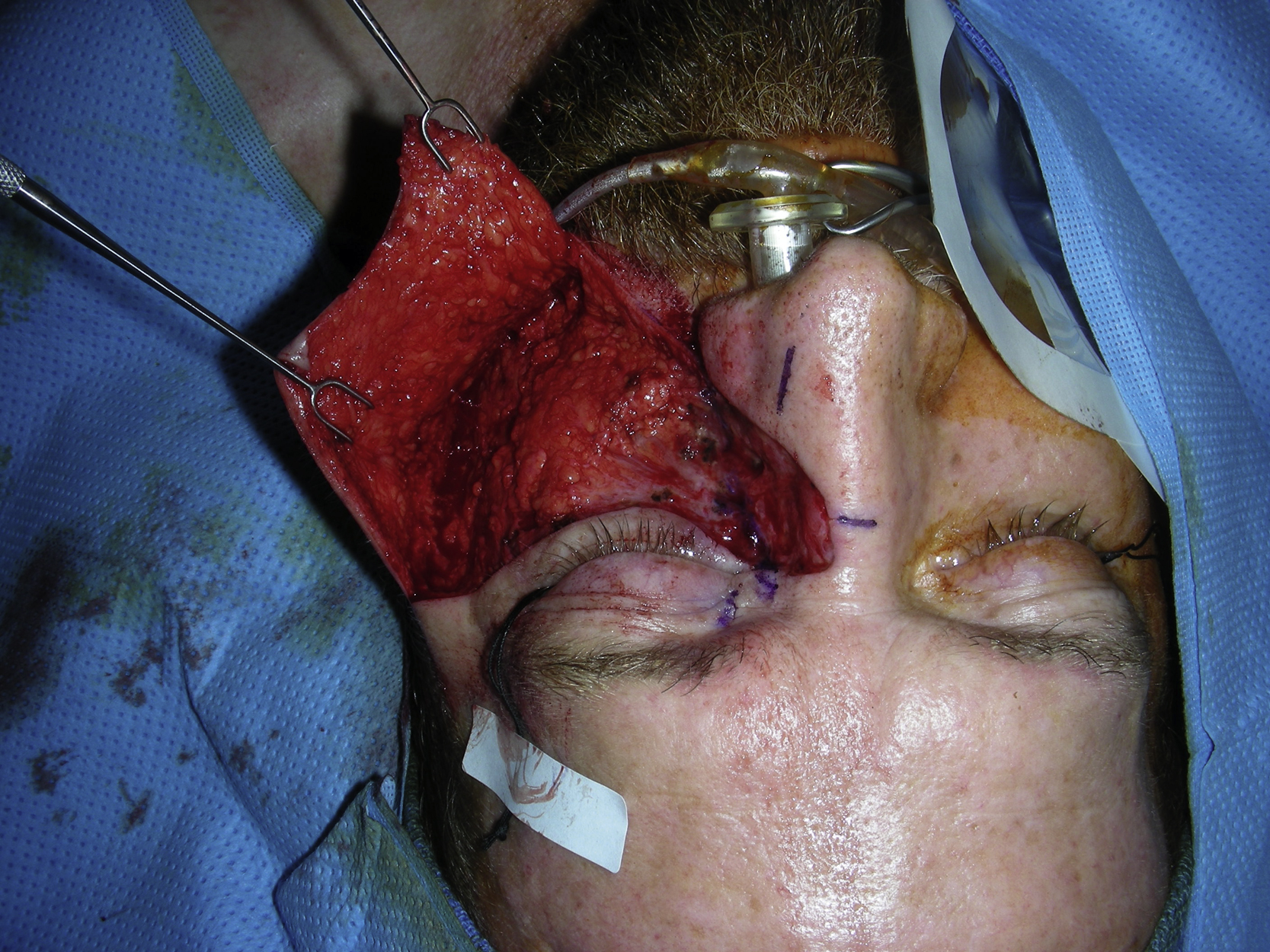 Intraoperative view showing the extent of skin elevation for the medial cheek advancement flap.