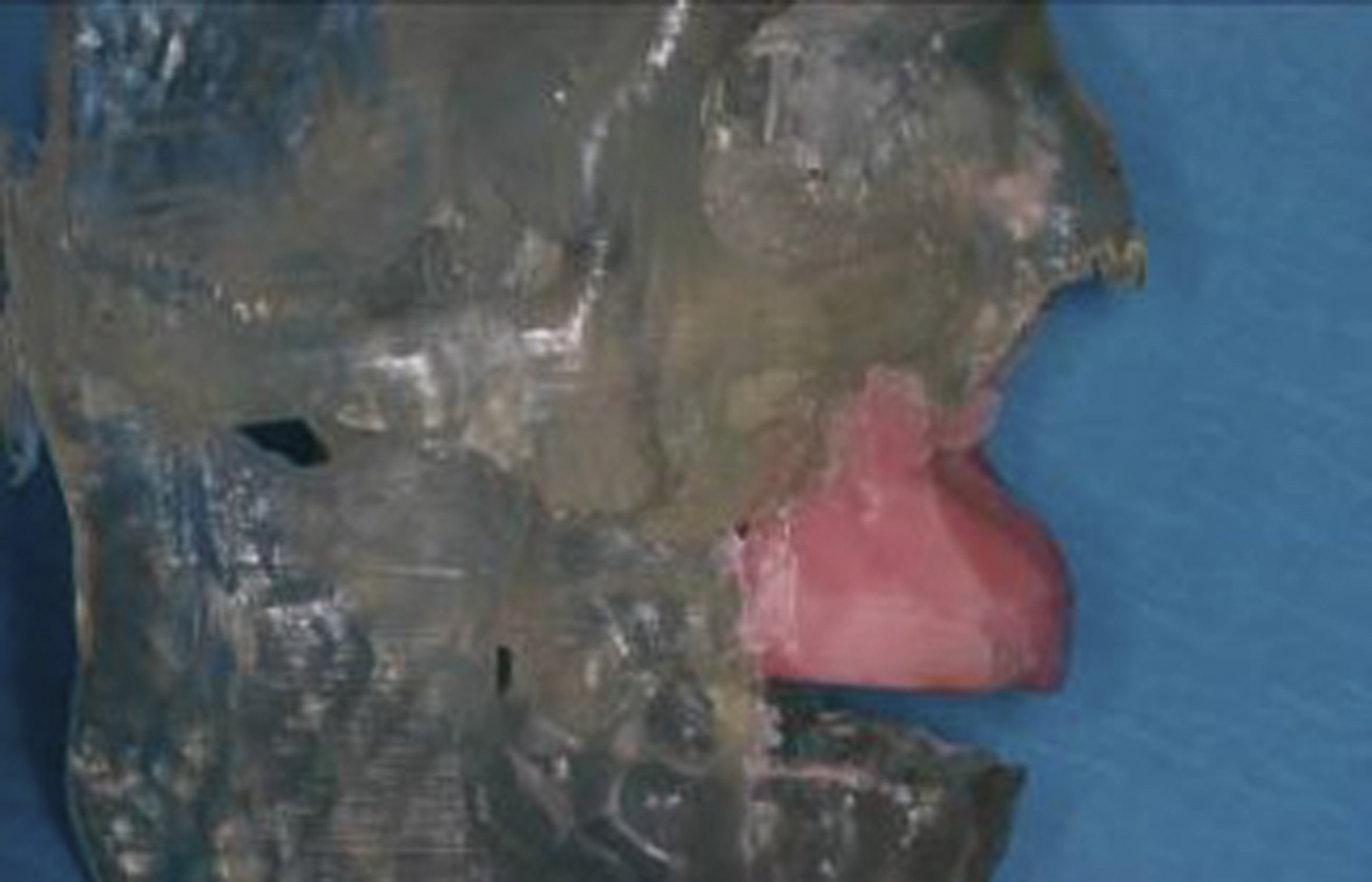 Lateral view of preoperative 3-D model showing the exact amount of missed maxilla in this patient.