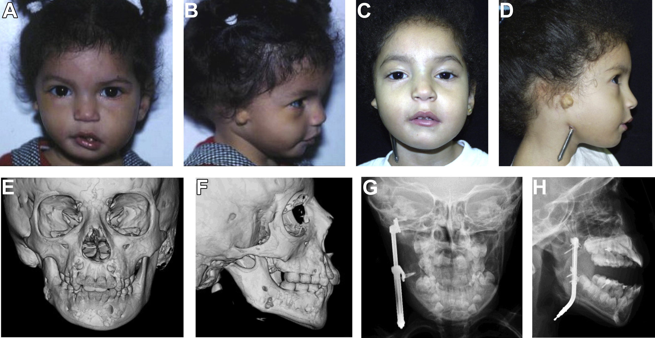 McCarthy and colleagues enumerated several critical lessons in their 22-year review of early MDO in patients younger than 10 years of age with Pruzansky type I/IIA mandibles undergoing unilateral MDO. In a subjective photographic assessment of satisfactory versus unsatisfactory outcomes of patients at skeletal maturity with history of MDO before 10 years of age, the investigators found overcorrection from the midline (>44%) and younger age at time of initial distraction (4.7 vs 7.5 years) to significantly correlate with improved outcomes (our own experiences suggest patients undergoing MDO before 3 years of age benefit from spontaneous descent of the ipsilateral maxillary dentoalveolus with distraction). Moreover, the use of comprehensive orthodontia including postoperative splints further aided successful distraction. In a retrospective outcome analysis of vector selection and overcorrection in MDO, the New York group suggested the oblique vector offered an ideal balance between the horizontal and vertical vectors by simultaneously lengthening the ramus and translating the gonion. They concluded that, although a subset of patients who undergo early MDO require secondary surgery (eg, orthognathic correction) at skeletal maturity, they often maintain satisfactory outcomes if initially overcorrected despite a varying degree of relapse, and invariably benefit from improved appearance-related psychosocial development during childhood. Moreover, patients undergoing early MDO benefit from increased bone stock for secondary orthognathic surgery.
