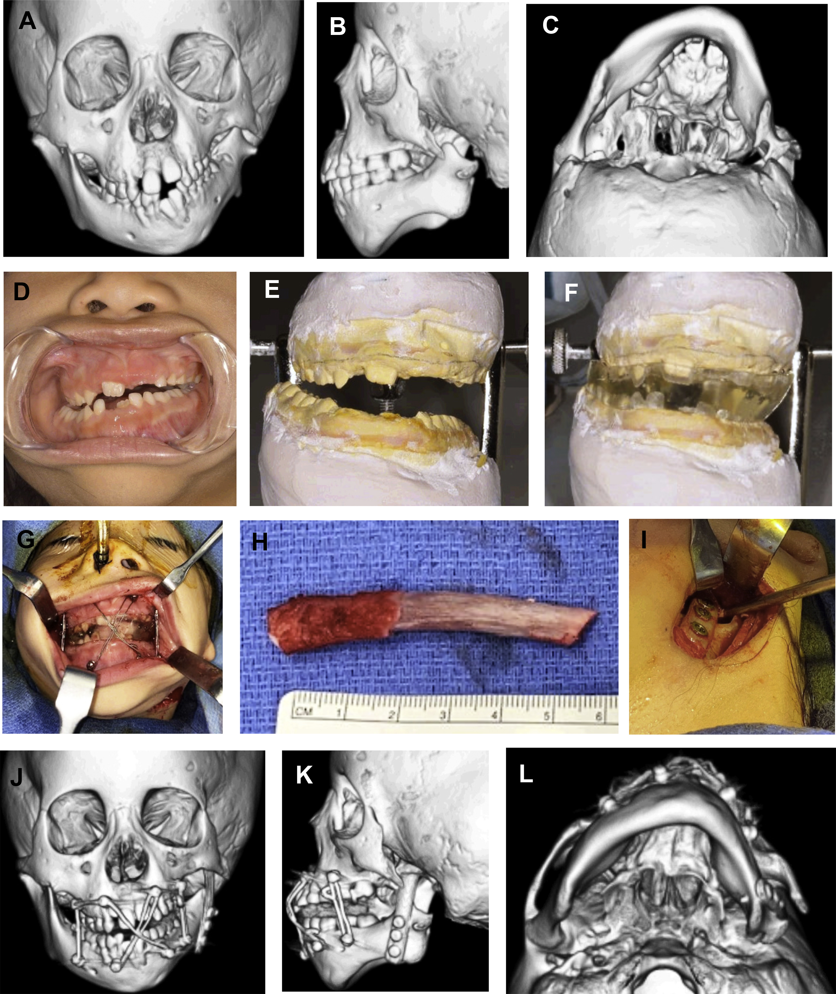 Secondary 2-jaw orthognathic surgery plus genioplasty at skeletal maturity benefits from improved bone volume from prior mandibular distraction.