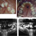 After a latency period of approximately 1 to 2 days in neonates, distraction during the activation phase proceeds at a rate of 1 mm/d (potentially 2 mm/d) to avoid premature consolidation and to reduce the length of endotracheal intubation. Clinical end points for the activation phase in patients with unilateral HFM include (1) overcorrection of the occlusal plane, (2) inferior displacement of the ipsilateral oral commissure, and (3) and movement of the chin point beyond the midline. In neonates with bilateral HFM, activation continues until the mandibular anterior teeth are anterior to the maxillary anterior teeth (ie, class III malocclusion–like appearance). An additional criterion for cessation of distraction in respiratory-compromised neonates includes evidence of improved retroglossal airspace on lateral radiograph or endoscopy. Adherence to these principles has led to successful extubation and improved maxillomandibular relation in 92% to 100% of patients ( Fig. 1 ).