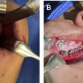 Our preferred technique for MDO independent of age involves an osteotomy (vertical or oblique >horizontal vector) of 1 or both sides of the deficient mandible with the application of an internal, semiburied distractor through a Risdon approach. Advantages of internal devices include decreased visibility, cutaneous scarring, and likelihood of trauma and infection. Advantages of external devices include increased ability to mold the regenerate and alter the distraction vector after osteotomy, and precise placement of distracting pins without wide periosteum undermining in the setting of a severely hypoplastic mandible. We typically favor a vector oblique to the maxillary occlusal plane in order to obtain expansion in both the vertical and sagittal dimensions, although the exact vector orientation depends on the underlying mandibular morphology. The semiburied distractor, which is secured with bicortical screws, typically exits the skin near the retroauricular region. A piezoelectric saw is used to perform a near-complete osteotomy distal to the developing tooth roots. While considering the inferior alveolar nerve, a full corticotomy over the buccal surface of the mandible and superior and inferior surfaces of the lingual mandible completes the osteotomy. The distractor device is then activated for several millimeters to ensure advancement without interference. An osteotome may be used to carefully separate adjoining bony edges while preserving the nerve. Once confirming a complete osteotomy, the engaged bony edges are opposed and the incision closed in layers with resorbable suture.