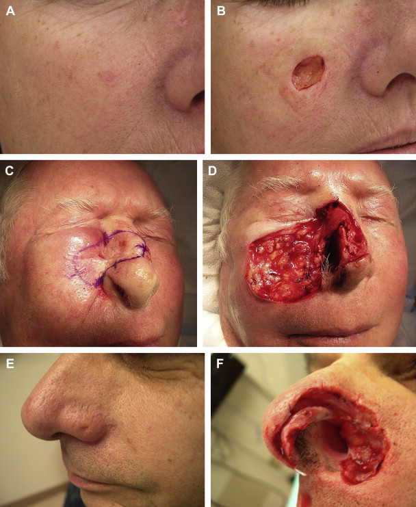MAC is an uncommon tumor. In a retrospective case series at a Mohs referral center, the mean number of cases per year was 1.63. MAC generally presents a smooth flesh-colored or yellow slow-growing indurated plaque or cystic nodule on the central facial region ( Fig. 1 ). The average tumor size at diagnosis is 2 cm. Other rare locations include the scalp, axillae, buttocks, and genitals.