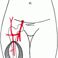 Surgery starts by undermining the epigastric flap in a suprafascial plane. Skin is incised to the sheath with an upward 45° inclination in order to include as many perforators as possible and also in order to face the donor site skin flap with similar thickness (Fig. 28.4).