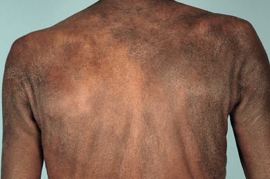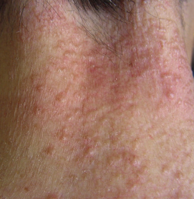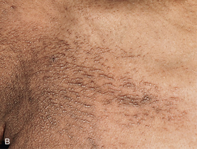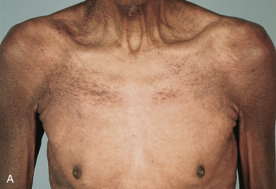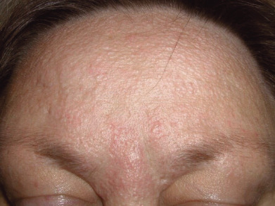 Follicular mucinosis can occur as erythematous, indurated, hairless plaques in benign alopecia mucinosa, as well as in the setting of mycosis fungoides. Dilated follicular orifices can give the appearance of comedones (blackheads), and sticky gelatinous material may be extruded from the lesions. This portion of the atlas will guide you through the various clinical presentations associated with mucinosis.