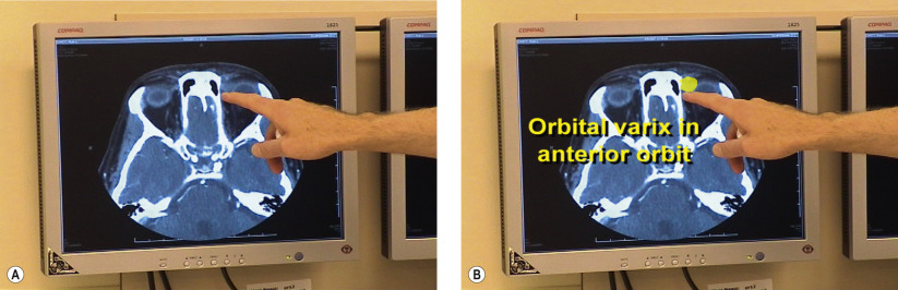| Removal of a residual and retro-trochlear varix in the anterior orbit |
