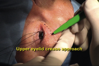 Varices are a challenge surgically since they are thin walled, may be deflated (making them hard to find) and can be ruptured easily during surgery. Rupture can be avoided by mapping, which is facilitated percutaneously by inflating the lesion and placing a needle in the varix. Co-localization with CT scan in the radiology suite has added accurate visualization intraoperatively to facilitate this process. If this facility is not available, superficial lesions can be identified and cannulated. This process is easily aided by intraoperative inflation of the varix through raising the thoracic pressure in order to identify the lesion for placement of the cannula and for the mapping and gluing of the varix. Deeper lesions can also be identified by careful exposure using periodic Valsalva to recognize and isolate the anterior surface as shown in the following retro-trochlear varix.