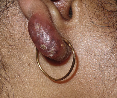 Atypical mycobacterial infections can occur in immunocompetent hosts after trauma, surgery, or exposures to organisms in specific locations such as fish tanks ( Mycobacterium marinum ) or pedicure spas ( Mycobacterium fortuitum ). Immunocompromised individuals are at risk of developing infections with atypical mycobacteria such as the Mycobacterium avium-intracellulare as seen in patients infected with HIV. Despite the great variety of atypical mycobacterial organisms, the clinical findings tend to be similar and nonspecific, including papules, pustules, nodules, and ulcers. They can be localized or widespread depending on the cause, exposure, and underlying immune status of the patient. Tissue culture with antibiotic sensitivity testing is helpful, but can take several weeks to be completed.