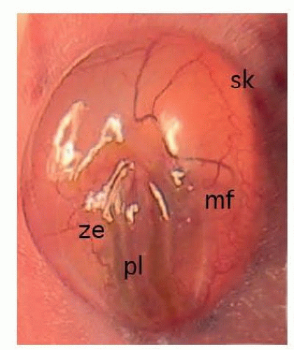 The MMC results from failure of neurulation resulting in an “open book” of distinct elements that are normally closed over the spinal cord (FIG 1) as described in the Myelomeningocele, Postnatal Closure chapter.