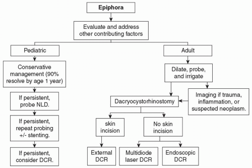 In adults, however, DCR is the preferred primary surgery for NLDO after the other causes of tearing have been eliminated or addressed.
