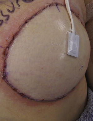 In a second larger series, Keller reported his outcomes in 208 autologous free flaps for breast reconstruction in 145 patients monitored with near-infrared spectroscopy intraoperatively and for 36 hours postoperatively. Five patients had complications that were predicted by near-infrared spectroscopy before any clinical signs, allowing for expeditious flap salvage. The eight reoperations resulted from hematomas, venous congestion, and arterial thromboses. No flap losses occurred in the series. Based on his experience with these thromboembolic events, Keller devised a diagnostic algorithm for early prediction of vascular compromise based on an absolute StO 2 number and the StO 2 drop rate. In this study, a change in StO 2 of 20% or greater per hour predicted a vascular complication. In addition, an absolute drop of StO 2 to less than 30% was also predictive of vascular compromise ( Figs. 4 and 5 ).