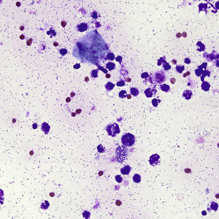 The other half of the specimen can be used for a touch prep with Gram staining if there are facilities and knowledge available for this technique. Typically, there are numerous bacteria; this will provide an immediate indication of the infectious organism(s) likely present.