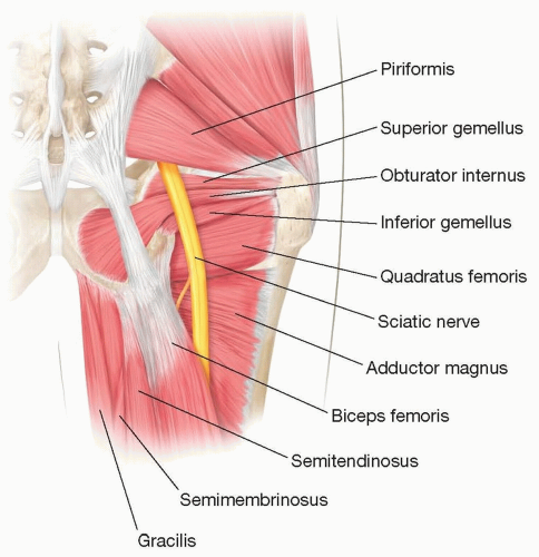 In some cases, the piriformis muscle will need to be detached from the femur laterally and retracted medially for improved exposure of the nerve at the sciatic notch.
