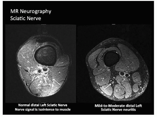 Magnetic resonance (MR) neurogram is an emerging technique in which edema or inflammatory changes around a nerve could help identify location of injury (FIG 3).