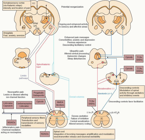 The sensation, delivery, and interpretation of pain sensation are complex. The discussion below will highlight the mechanisms involved, which have clinical implications of how patients sense/describe pain as well as provide a basis for pharmacologic treatment.