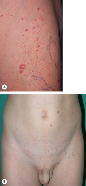 | Disorders with additional cutaneous findings | |