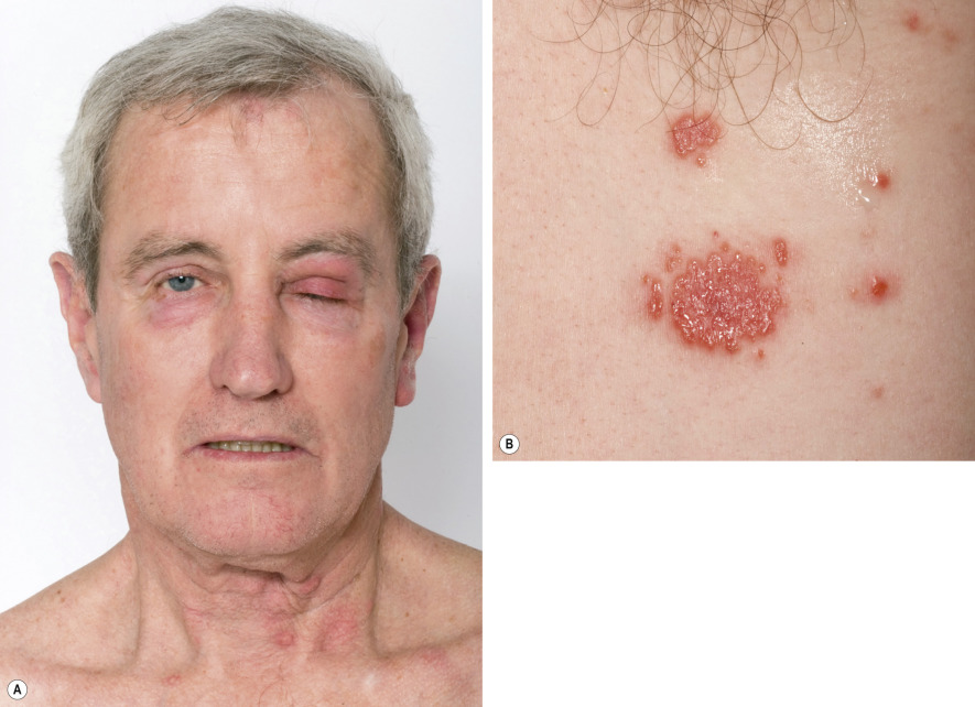 An upper respiratory tract infection or flu-like illness frequently precedes the development of the syndrome. Fever occurs in 40–80% of patients and can be intermittent. Extracutaneous involvement is also frequently seen ( Fig. 26.4 ; Table 26.3 ).