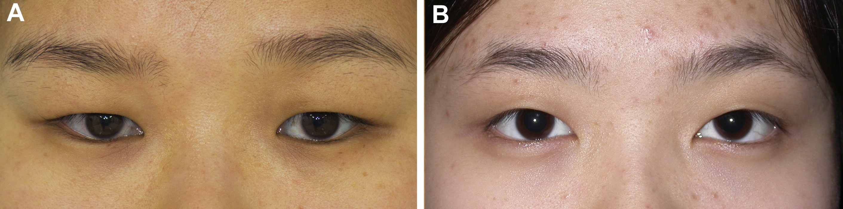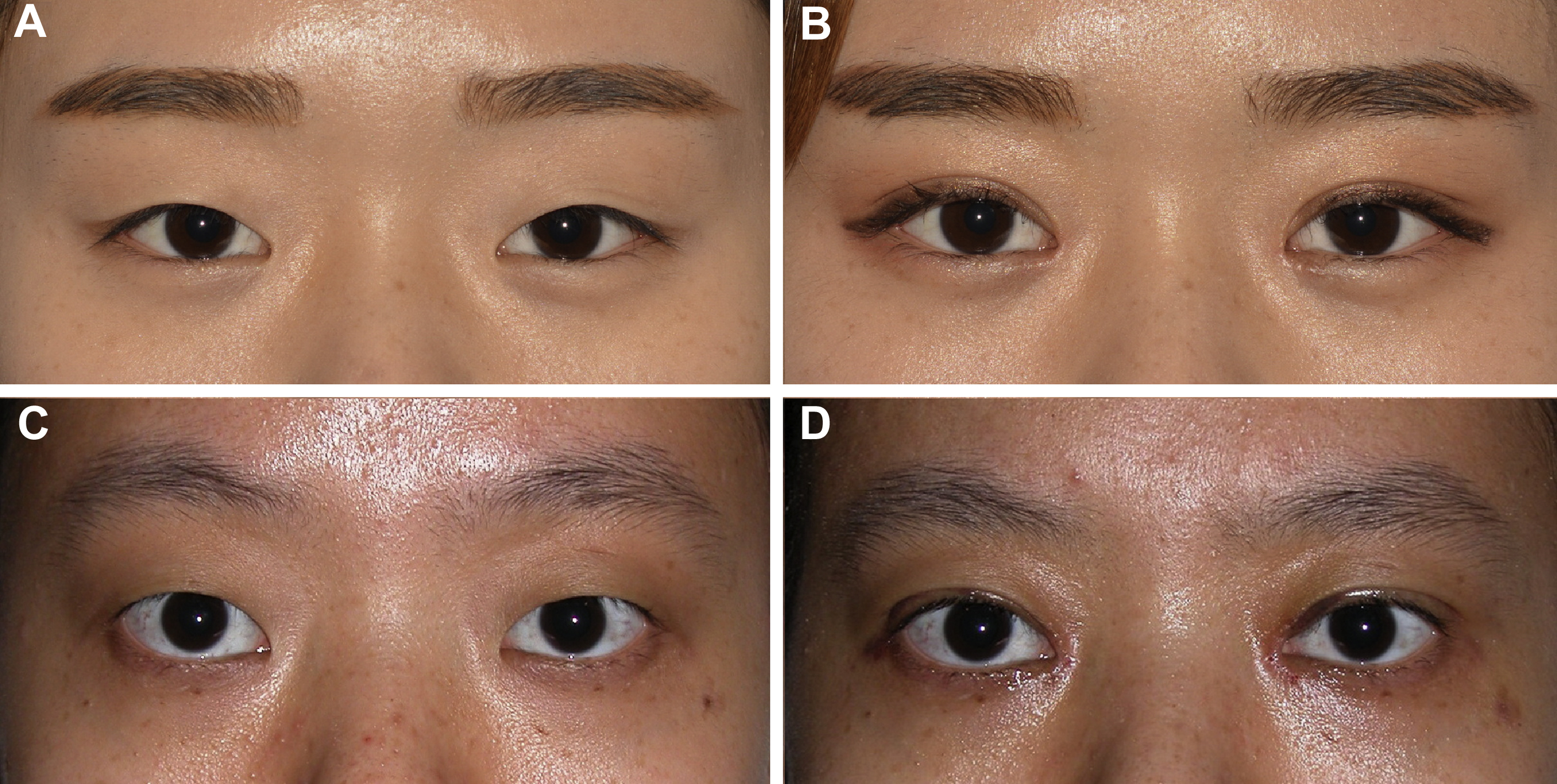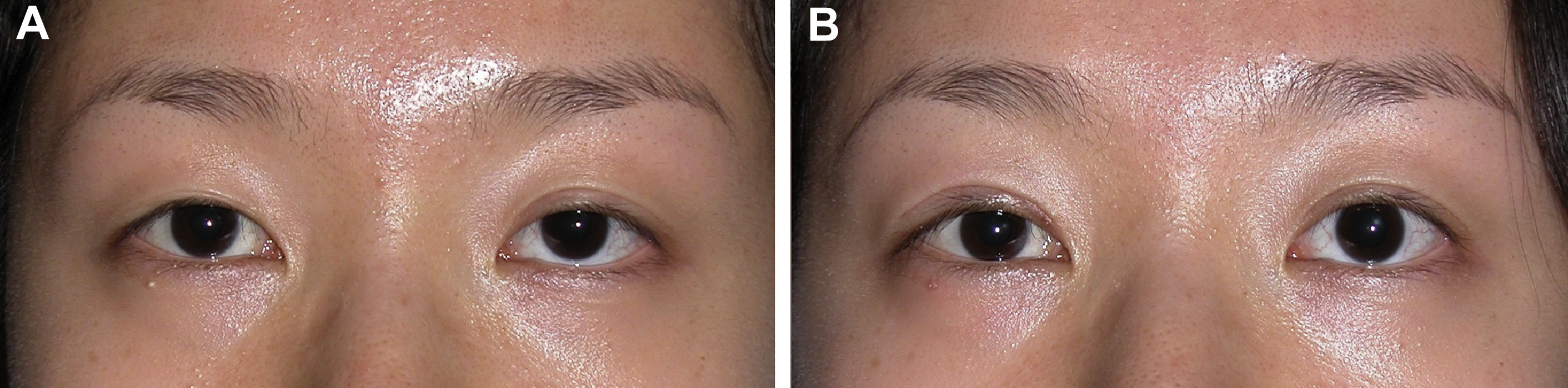 Double eyelid surgery is performed not only for cosmetic purposes but also for the correction of problems such as entropion, lash ptosis, and ptosis ( Fig. 1 ). Most patients prefer that the correction of these problems and double eyelid surgery be performed simultaneously. Furthermore, when patients with blepharoptosis undergo double eyelid surgery, the palpebral fissures become wider, resulting in a more pleasing eye shape ( Fig. 2 ).