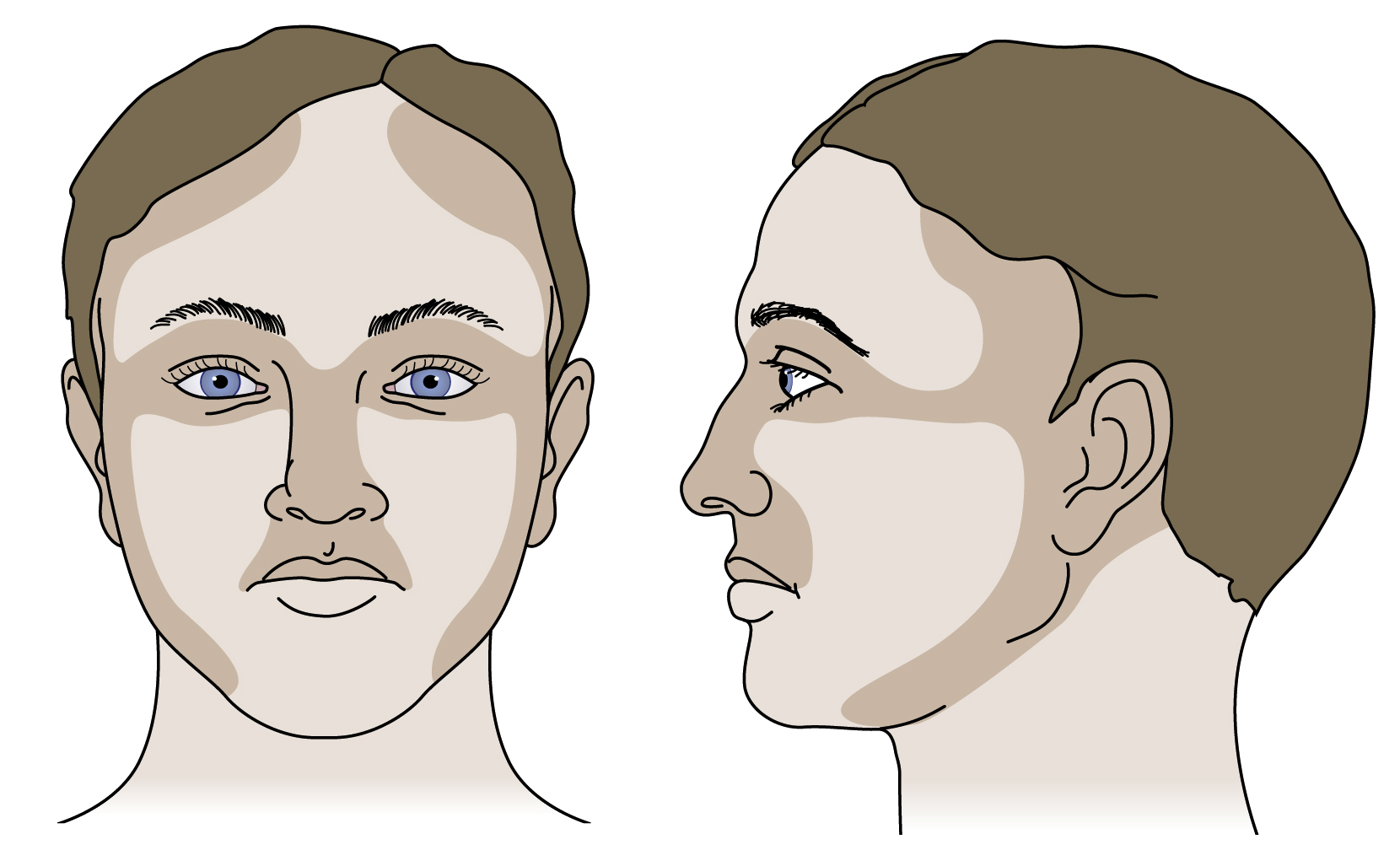 MMS is considered by many as the gold standard in BCC removal by providing equal or higher rates of tumor clearance when compared with other modalities. MMS involves histological analysis of tissue margins and therefore provides tumor clearance with maximal tissue conservation in areas of high risk for recurrence (periorbital, periauricular, and central face, see Fig. 9.3 ), resulting in smaller surgical defects compared to standard surgical excision. Five-year recurrence rates for primary and recurrent BCCs treated by MMS are approximately 1%–2% and 4–7%, respectively. Therefore it is especially useful for primary facial BCCs with aggressive clinicopathologic subtypes (morpheaform or infiltrative), recurrent facial BCCs and any BCC in a high-risk location. The use of MMS to treat the majority of BCCs is probably inappropriate however. The process can be lengthy for the patient and the Mohs practitioner as a number of cycles of excision, processing, and interpretation may be necessary to achieve clearance. The histology slides and blocks are not retained for subsequent review and this can be particularly problematic when an atypical tumor is identified within the lesion, thereby making diagnosis of the mixed tumor difficult. From a health economics perspective, MMS is significantly more expensive than standard excision and for nonrecurrent disease it has not been shown to produce better 5-year outcomes. For these practical reasons, MMS is applied selectively in centers that offer it as a treatment modality. It is likely that formalized criteria for its use will be required into the future as populations age, rates of NMSC increase, and health budgets become tighter.