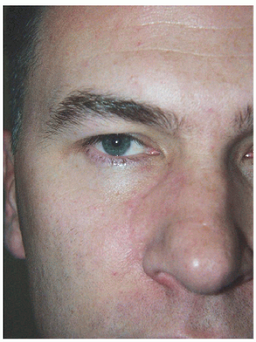 An important point when using these types of advancement flaps for surgical defects near the medial canthus, eyelid, or any free margin is to make sure the advancement of the flap and subsequent secondary tension vectors do not pull back or distort the free margin of the eyelid or medial canthus. In both of these examples, the flap was directed toward the medial aspect of the defect to avoid secondary tension vectors on the medial canthus of the eye (Figs. 5.3C and D).