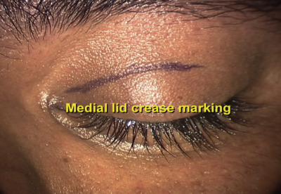 Medial upper eyelid crease approach