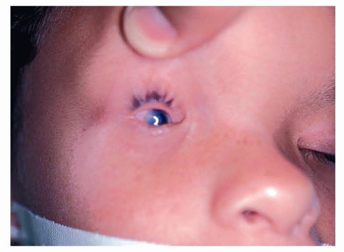 Multidisciplinary team care is essential for the management of affected children and includes plastic surgery, pediatric ophthalmology, prosthetic ocularist, optometry, genetics, and social work.
